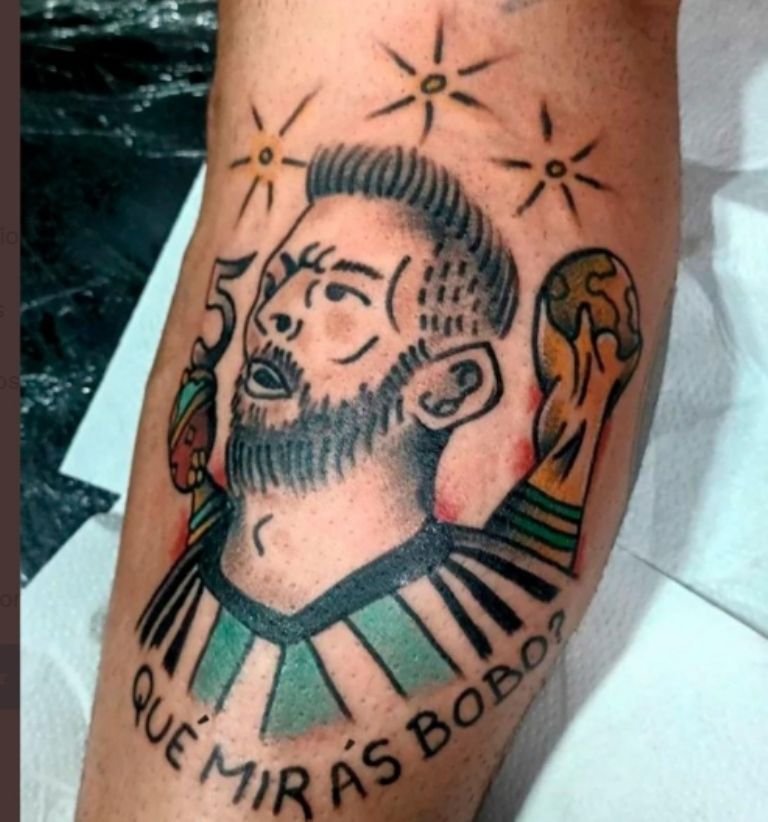 La principal camada de tatuajes que carecen de belleza son protagonizados por Lionel Messi, quien en esta Copa del Mundo de Qatar 2022 realizó siete anotaciones y tres pases a gol en siete duelos disputados. Uno de ellos sobresalió del resto por lo "pesado" que este se ve en relación con su cuerpo actual, mismo que fue plasmado en la espalda del aficionado.