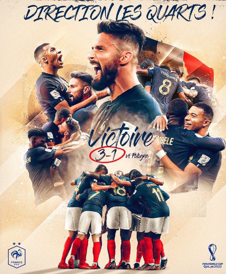 Francia sigue viento en popa rumbo a revalidar su título de Rusia 2018, luego de vencer 3-1 a Polonia y echarlo en octavos de final de Qatar 2022, con un tanto histórico de Olivier Giraud con el que rompió la marca histórica del mítico Thierry Henry y doblete de su baluarte Kylian Mbappé, en un partido difícil ante una selección que ya le tenía tomada la medida.