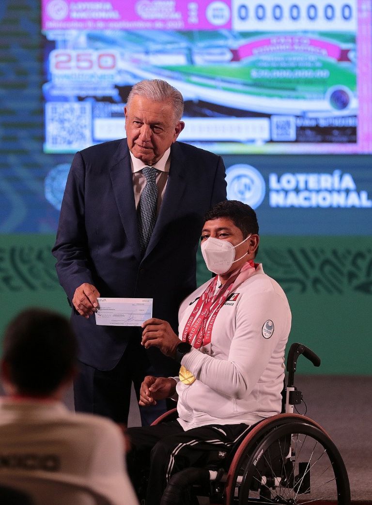 El presidente Andrés Manuel López Obrador repartió estímulos económicos a 364 deportistas olímpicos y paralímpicos que participaron en Tokio 2020, donde dijo se obtuvieron buenos resultados que, no obstante, significaron la reducción de becas para muchos atletas.