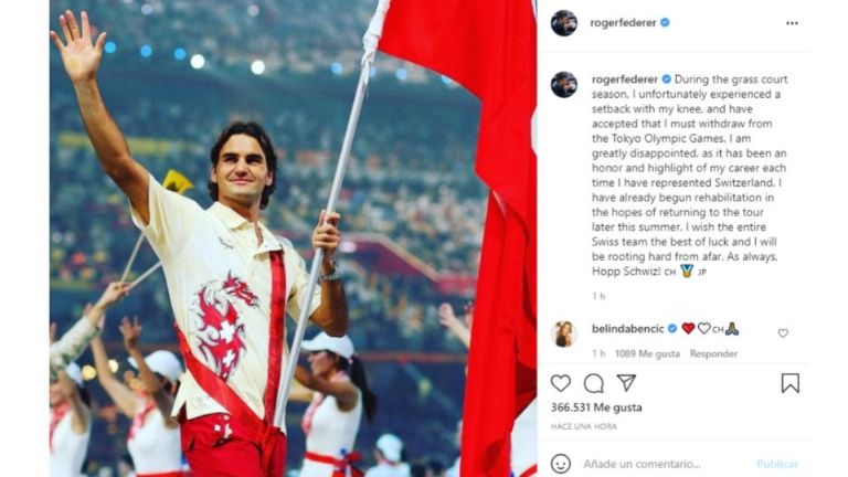 Durante la temporada de césped, desafortunadamente experimenté un revés con mi rodilla y he aceptado que debo retirarme de los Juegos Olímpicos de Tokio“, reveló Federer en sus redes sociales.