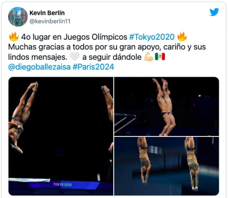 La dupla conformada por José Balleza y Kevin Berlín Reyes peleó hasta el último momento y, al igual que Carolina y Dolores remontó varias posiciones, pero no pasó del 4to lugar en la plataforma de 10m.