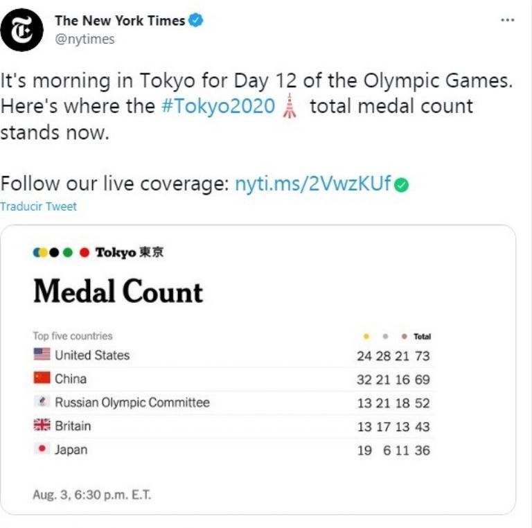 The New York Times y The Washington Post presentaron un conteo diferente al oficial que ha sido criticado en redes sociales, ya que organizaron el medallero en función de la cantidad de metales y no por el mérito de los mismos para que de esta forma Estados Unidos quedara como líder.