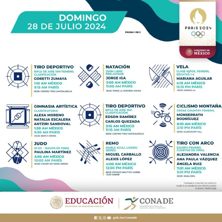 Desgraciadamente y a pesar de que los arqueros pusieron el ejemplo en la ronda inaugural de los Juegos Olímpicos de París 2024, hasta el momento ya han sido eliminados o descalificados algunos atletas mexicanos, aunque otros de los que restan competirán este domingo 28 de julio con base en el calendario que aquí les traemos para que no se pierdan ningunas de las emociones.