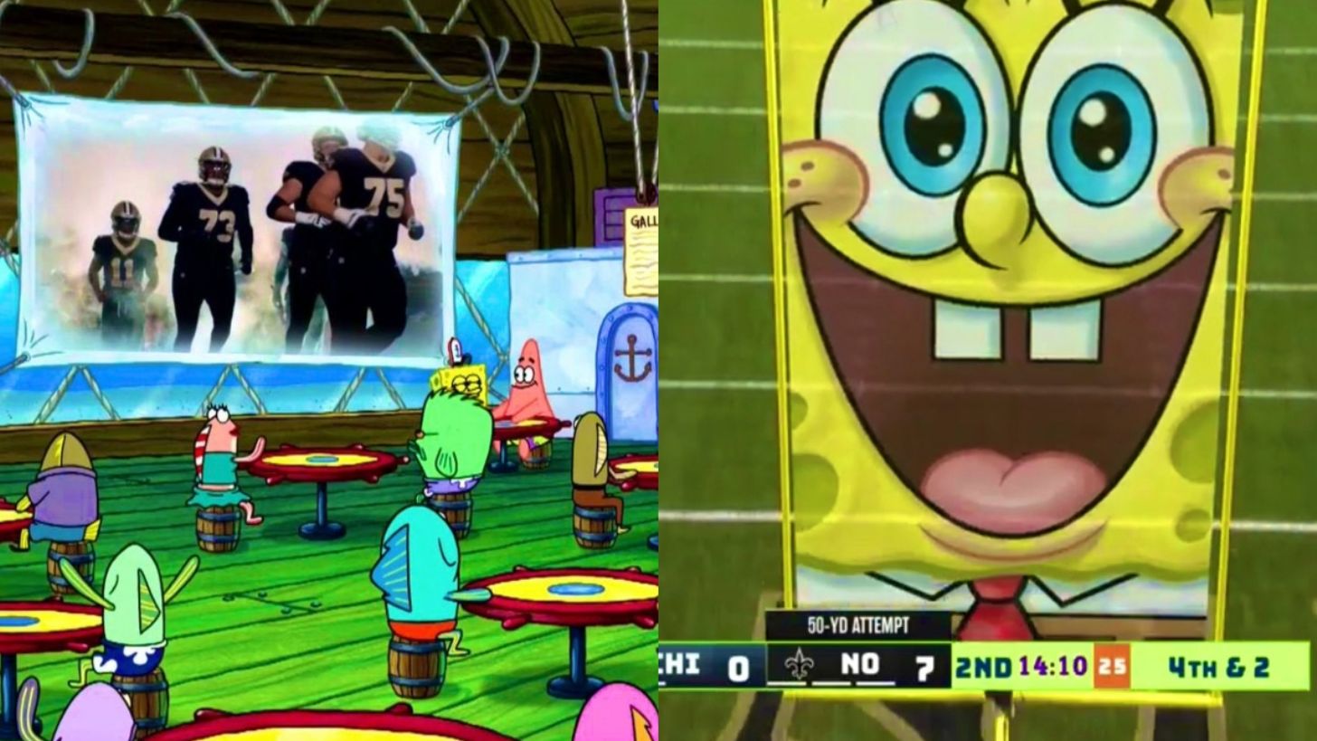 El partido entre New Orleans Saints contra Chicago Bears de la ronda de comodines, fue el partido elegido para que personajes de Bob Esponja y otros de Nickelodeon se vieran en el terreno de juego.