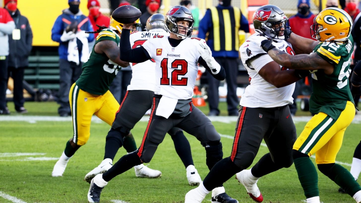 Con ayuda de un asfixiante bloqueo de pases encabezado por Shaquil Barret y Jason Pierre-Paul, que se combinaron para lograr cinco capturas de quarterback, y una curiosa decisión final de los Packers, Brady y los Bucs ganaron el título de la Conferencia Nacional.