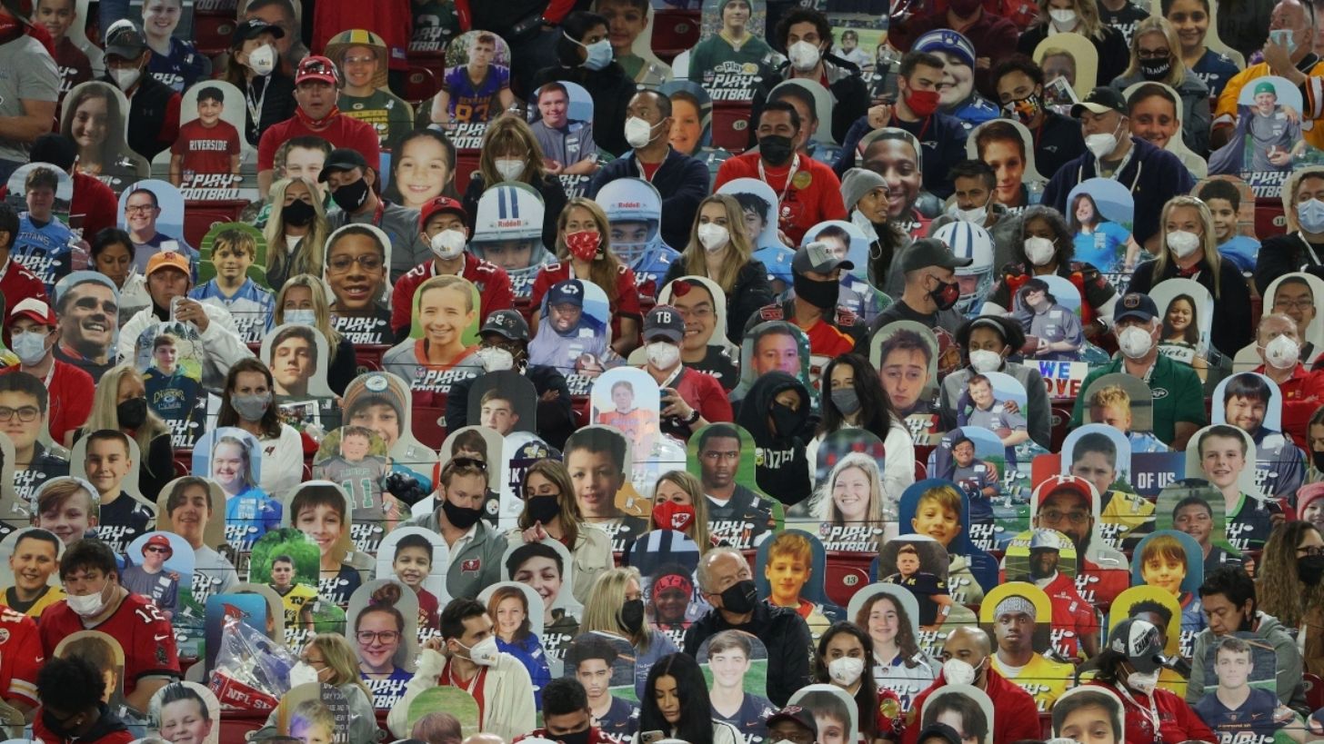 Los aficionados, como ya había quedado establecido, no ocuparon las primeras filas de asientos del Raymond James Stadium, primero en la historia de la NFL en el que el equipo local juega el partido del Super Bowl, al estar cerradas para crear distancia entre los aficionados y los jugadores.