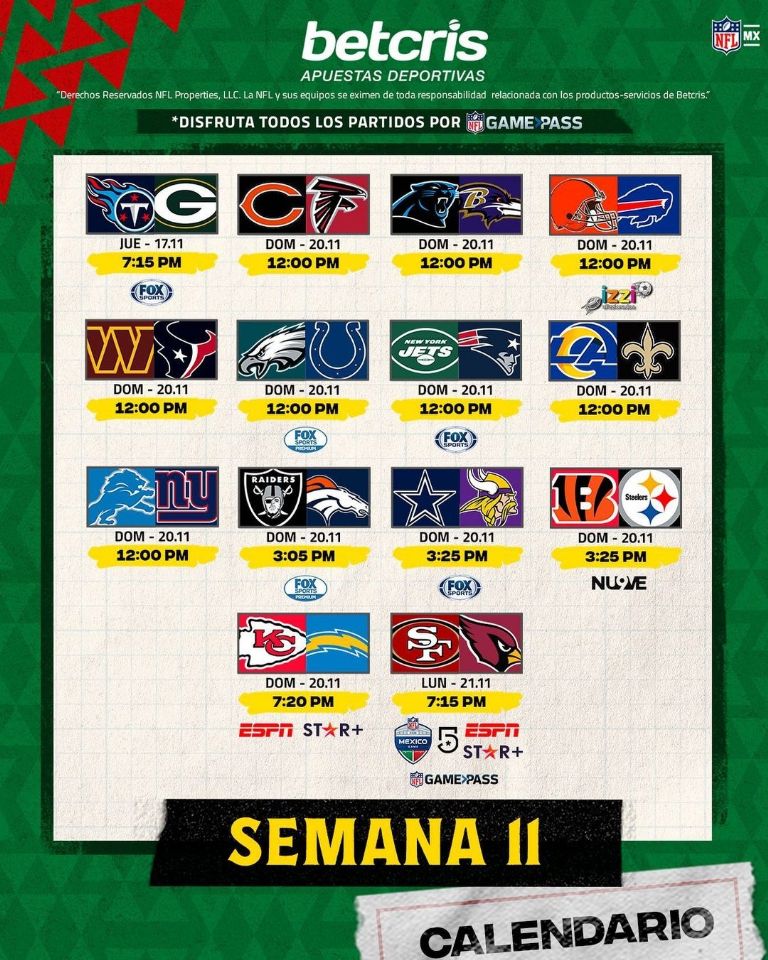 Broncos, por su parte, no renuncia a buscar un lugar en postemporada aunque sea como comodín, por lo que saldrá con todo al Empower Field at Mile High Stadium a tratar de vencer ante su propia gente y en su propio estadio a uno de sus más odiados rivales de división, que hasta la Semana 11 de la NFL comandan los Kansas City Chiefs con marca de 7-2, seguidos por los San Diego Chargers con 5-4.
