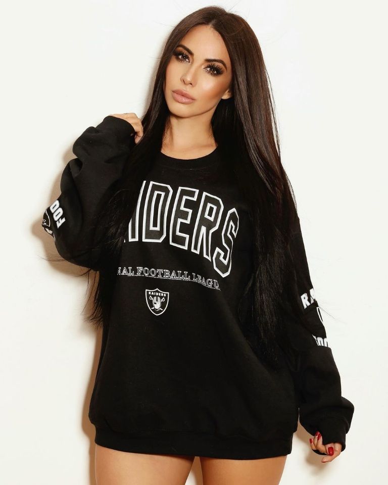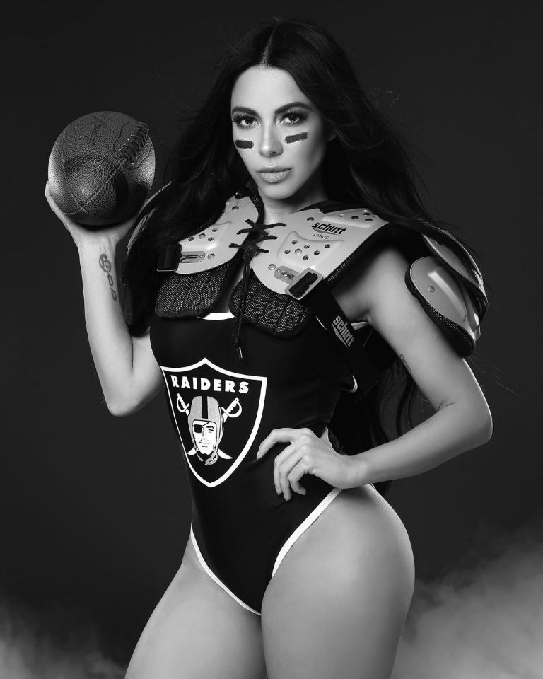 Aunque recientemente sorprendió a todos sus seguidores al subir fotos a Instagram con una playera de Selena Quintanilla, la cual combinó con un abrigo y jeans y en la que escribió “al menos escucho las bandas de mis remeras”, lo suyo lo suyo son los outfits deportivos que hacen alusión, sobre todo, a la NFL y en especial a Las Vegas Raiders, de los que es una de las mejores fanáticas.