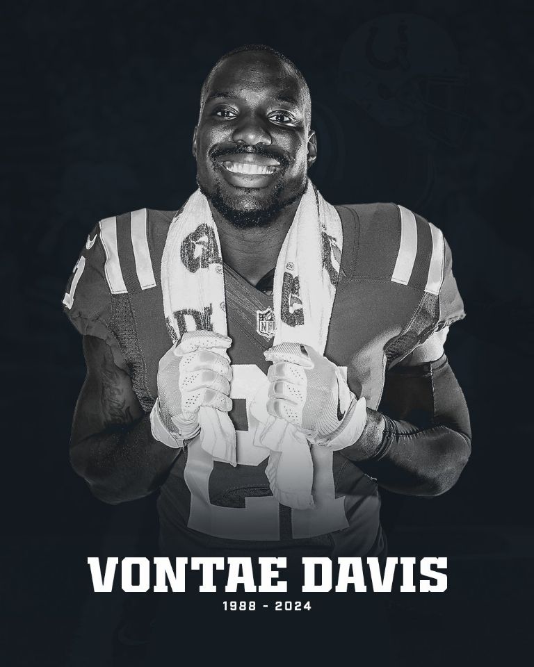 “Me entristece mucho enterarme del fallecimiento de Vontae Davis. Un gran tipo, compañero, jugador. Mis oraciones a la familia de Vontae”, fue el mensaje del propietario de los Colts, Jim Irsay, a través de sus redes sociales al enterarse del fallecimiento del ex jugador, cuyo cuerpo fue encontrado sin vida en un hecho en el que, aseguraron, no estuvo implicado ningún acto delictivo.