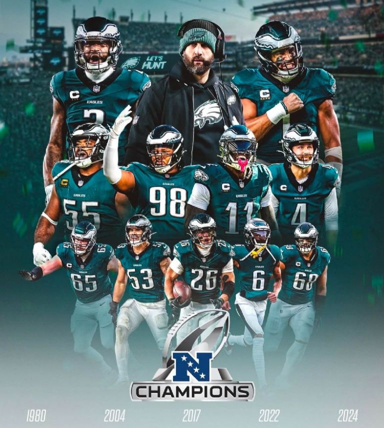 La última vez que los Eagles pudieron llegar a un Super Tazón se dio en el 2022 en el Super Bowl LVII, cuando fueron derrotados por los de Chiefs, quienes en este momento se miden ante los Bills en el Arrowhead Stadium, Kansas City, Misuri. Y posiblemente se vea una revancha que buscarán las Águilas Verdes ante los comandados por Patrick Mahomes.