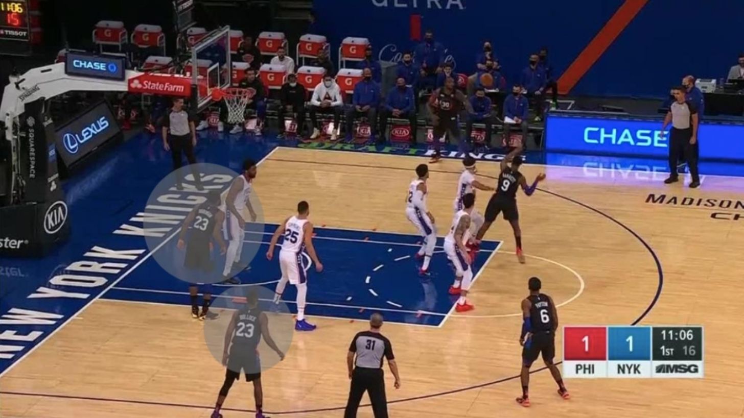 La noche, sin embargo, tuvo uno de esos capítulos insólitos sobre la duela del Madison Square Garden: el ingreso de Reggie Bullock y Mitchell Robinson, jugadores de Knicks, con el mismo dorsal 23 en la espalda. Aunque Bullock portaba el 25, su número, en el pecho, el reverso de su jersey tenía el de Robinson.