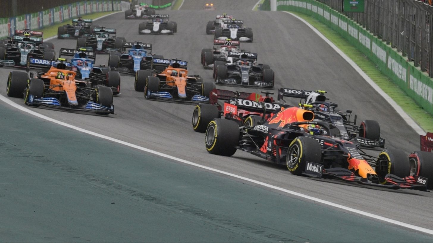 El mexicano terminó detrás de Carlos Sainz (tercero) en la carrera sprint, para iniciar en el cuarto sitio en el circuito de Interlagos. Sin embargo, un toque del español con Lando Norris en el inicio lo hizo descuidarse y ser rebasado por el tapatío, que se puso detrás de Valtteri Bottas (segundo).