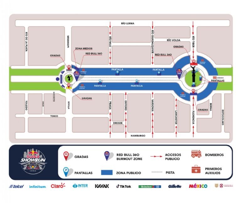 El Red Bull Show Run constará de algunas carreras, demostraciones y exhibiciones sobre el tramo del Ángel de la Independencia a La Diana Cazadora, donde el piloto tapatío robará los aplausos cuando salga a hacer sus recorridos en su RB7.