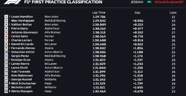 Así quedaron los pilotos de la F1 en el primer ensayo del GP de Arabia Saudita:
