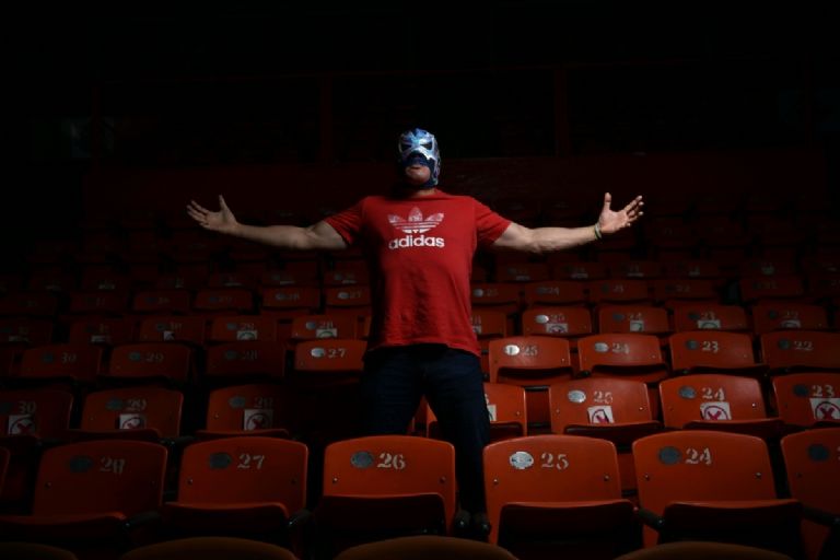 “Cuando empecé lo hacía de noche y escondido. Mi padre era de la escuela vieja, no precisamente de la lucha libre, sino de una familia que lo había educado de un modo recio, yo decía ‘me va a ver coser y va a pensar que soy de aquellos vatos que aún no salen del closet’. Tenía miedo que me descubriera”, confiesa el enmascarado, sentado en las butacas de la Arena México con El Heraldo Deportes.