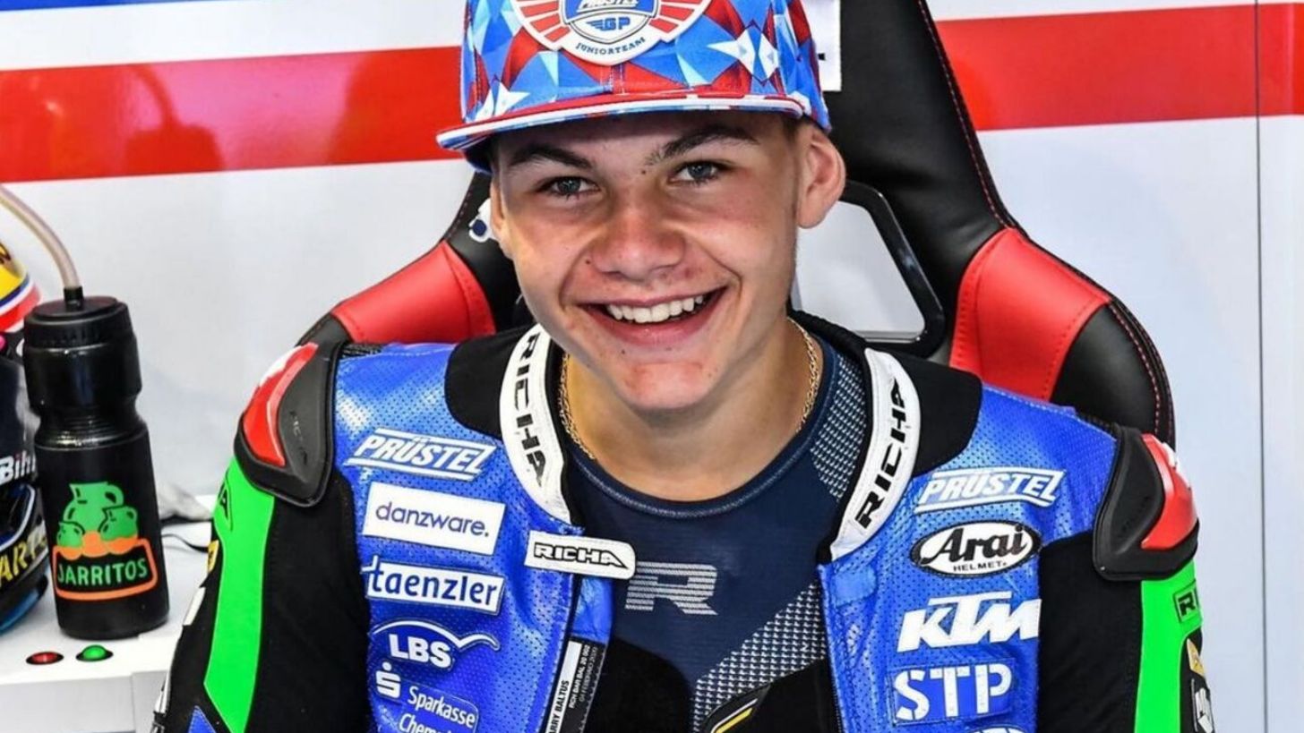 El piloto belga, que tiene apenas 16 años de edad, se derrapó al intentar dar una vuelta bastante cerrada y salió volando de su motocicleta.