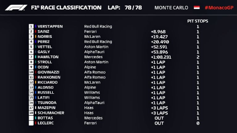 Max Verstappen es el ganador del Gran Premio de Mónaco de la Temporada 2021 de la Fórmula 1. El piloto neerlandés de Red Bull se quedó con el triunfo en el histórico circuito urbano, superando a la Ferrari de Carlos Sainz. Sergio Pérez luchó por el podio, pero finalmente terminó en el cuarto lugar, mientras que el tercero fue para el McLaren de Lando Norris.