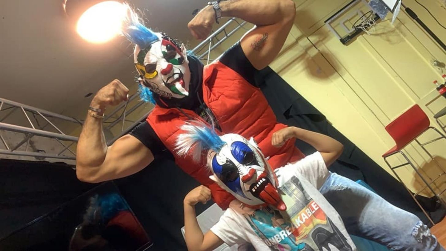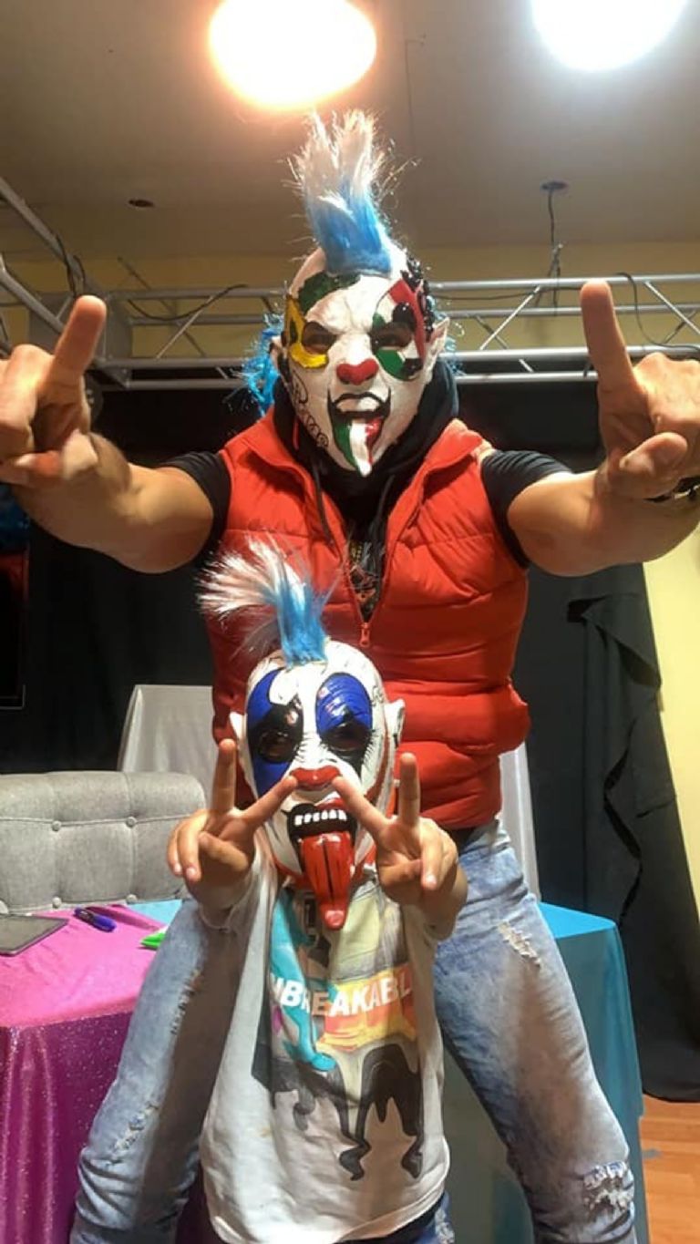 En su cuenta de Facebook, la superestrella de la AAA, Psycho Clown subió fotografías de su encuentro con Mateo. Tuvo un noble gesto, pues no dudó en regalarle una máscara original.