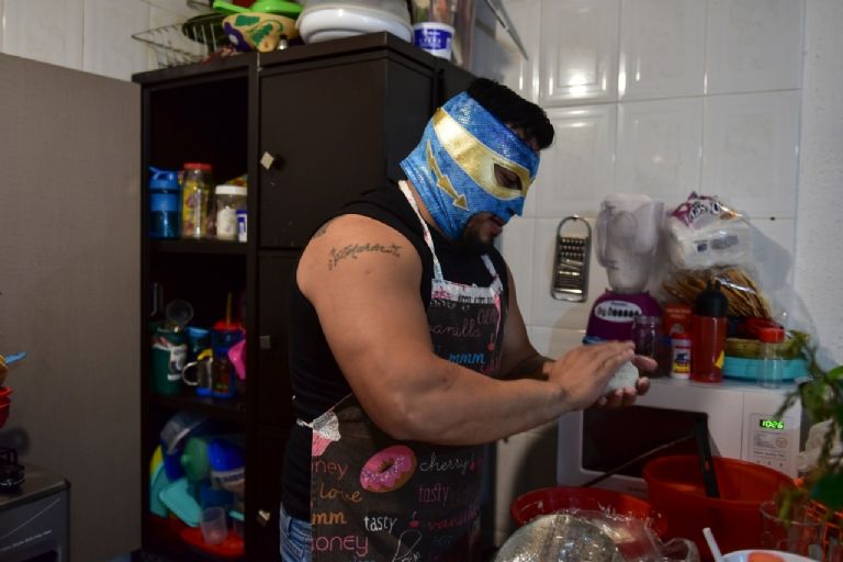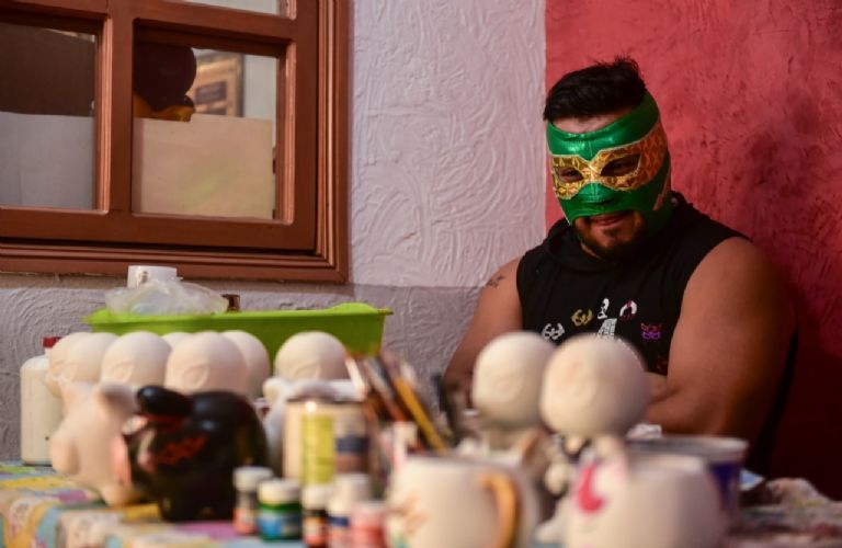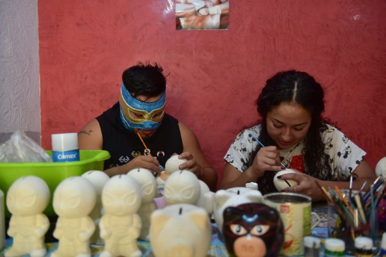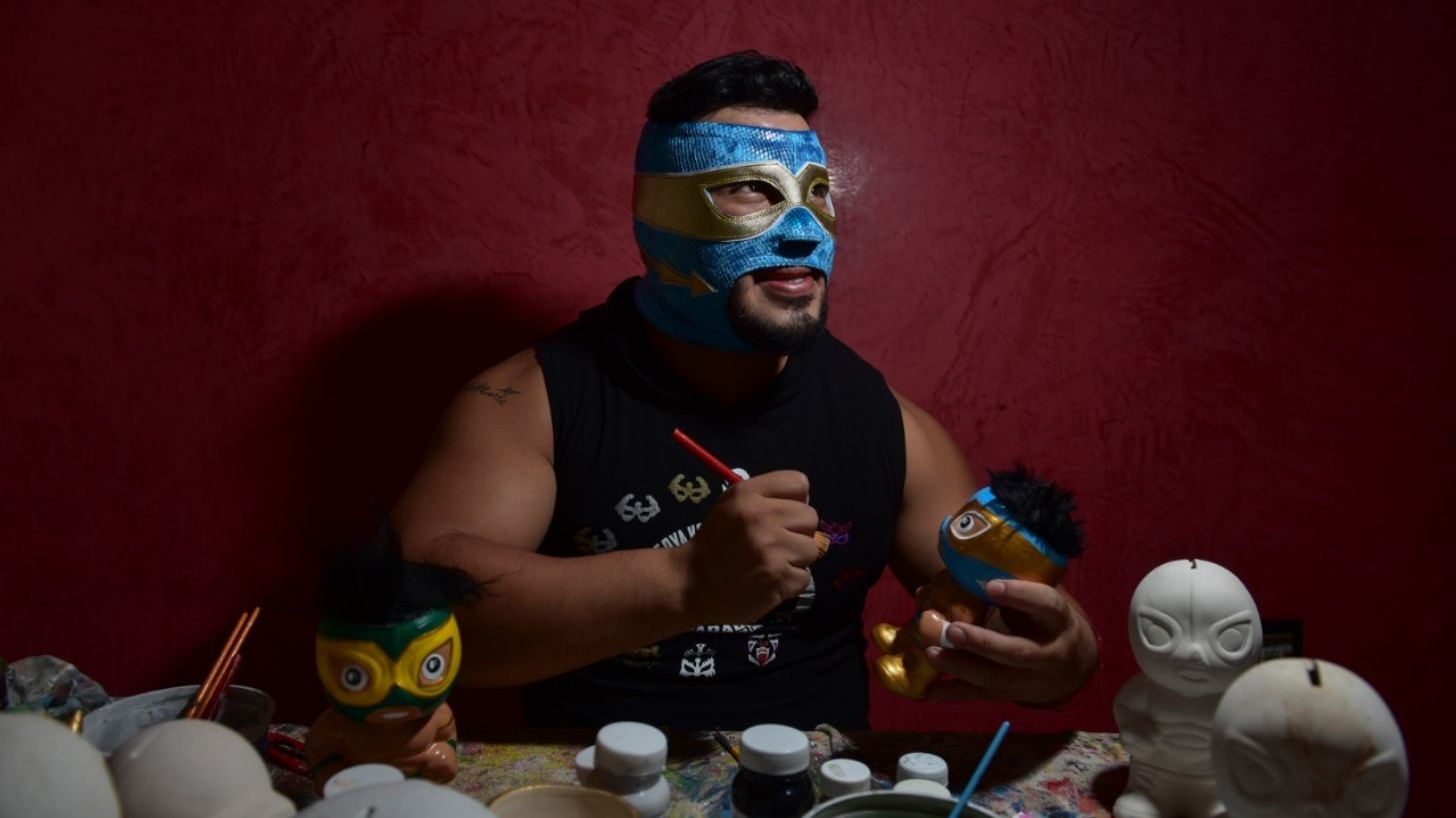 “Más que un hobby, fue una necesidad. En esta pandemia descubrimos muchos talentos que teníamos ahí escondidos y uno de ellos fue éste. Primero empezamos pintando unos cochinitos y luego encontramos luchadores. Pero la clave de todo es mi esposa, ella me dice cómo hacerle para que queden bien las alcancías”, explica el gladiador del Consejo Mundial de Lucha Libre.