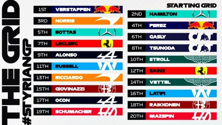 En tanto, el equipo Ferrari no tuvo una buena clasificación y, recién, en el séptimo lugar aparece Charles Leclerc, quien deberá batallar para luchar por ganar posiciones. En tanto, Carlos Sainz largará décimo segundo, tras no haber llegado a la última qualy con los diez mejores.