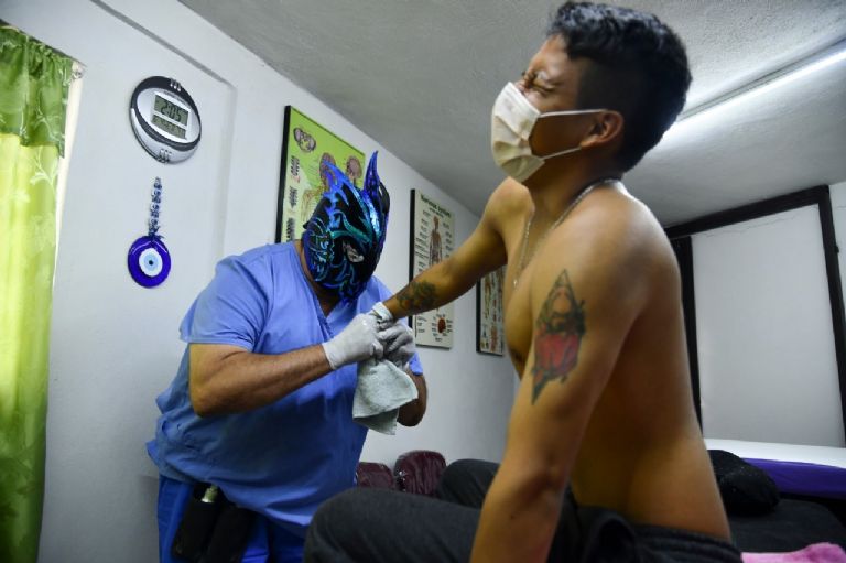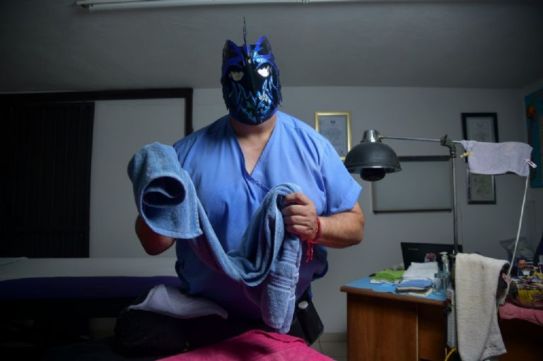 “En la lucha libre los desarmo y aquí los armo”, bromea el enmascarado, mientras recibe al Heraldo Deportes en su consultorio. En esta, su otra zona de trabajo, lo rodean toallas, camas, aceites, esquemas de la estructura ósea y diplomas de los cursos que ha tomado como masoterapeuta físico deportivo osteópata.