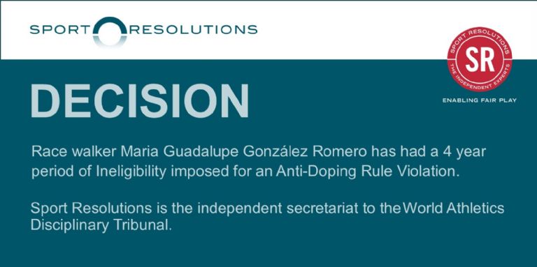 “El Tribunal Disciplinario, integrado por Lucas Ferrer como árbitro único, determinó que la Sra. González Romero ha cometido una Violación de las Reglas Antidopaje de conformidad con el Artículo 2.5 del ADR y como resultado se impone un periodo de Suspensión de cuatro años”, se informó en un comunicado.