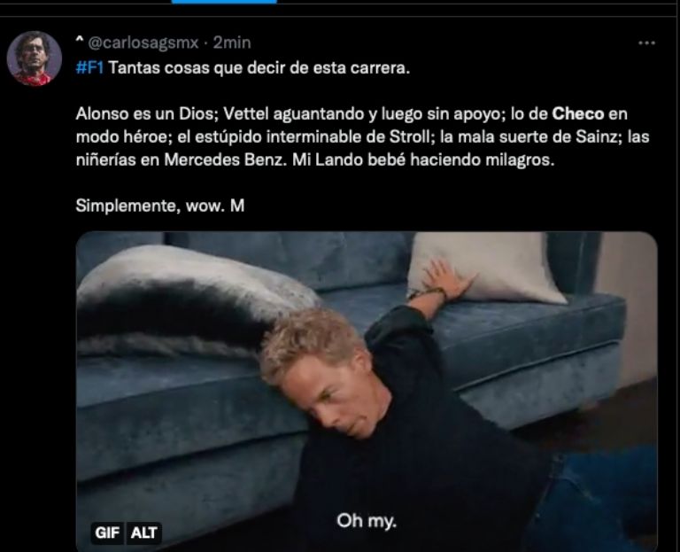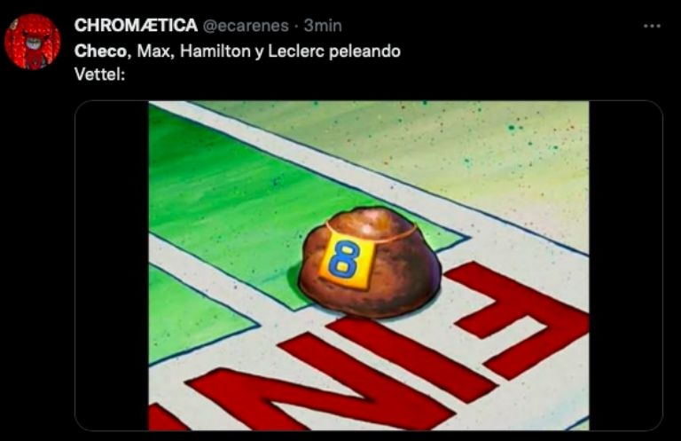 Checo Pérez hizo todo lo posible por tratar de rebasar a Charles Leclerc, pero no pudo y puso en riesgo el subcampeonato del mundo, los internautas sufrieron con él y elaboraron divertidos MEMES, aquí presentamos los mejores: