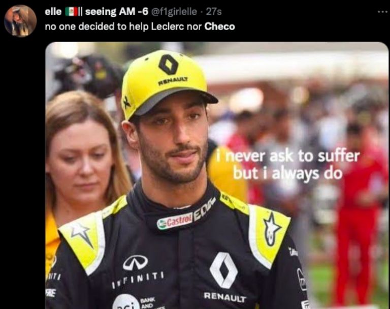 Evidentemente ese hecho no fue bien tomado por los fanáticos de Checo Pérez en redes sociales, que además de criticar la estrategia de la escudería austriaca, lo castigaron con MEMES por no alcanzar podio y a continuación presentamos los mejores: