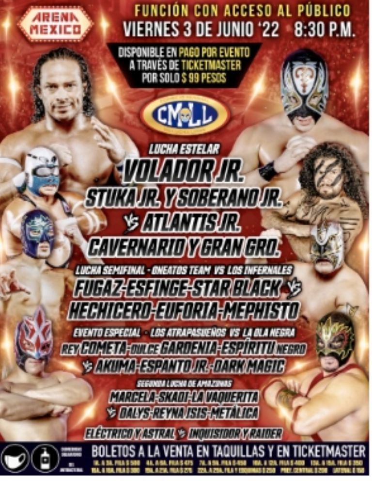 La primera función del mes en la Arena México está próxima a darse. El Consejo Mundial de Lucha Libre (CMLL) está más vivo que nunca y, por tal razón, presenta para sus miles de aficionados alrededor de México la cartelera disponible para este viernes 3 de junio del 2022, así como el horario y los boletos del evento.