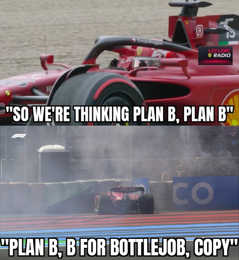 Con ingeniosos y muy divertidos memes, los fanáticos de la Fórmula 1 se dieron vuelo en redes sociales con imágenes caricaturescas de la escudería italiana y de su piloto, quien tras su abandono permitirá al neerlandés Max Verstappen ampliar su ventaja en el Campeonato de Pilotos de la máxima categoría del automovilismo mundial.