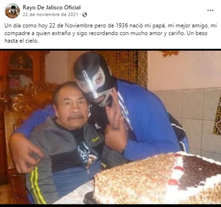 Fue su hijo, El Rayo de Jalisco Jr, quien mostró el rostro de su padre en una publicación de Facebook, primero en un Día del Padre y después en otras ocasiones para recordar a su papá, quien murió el 19 de julio de 2018 a los 85 años.