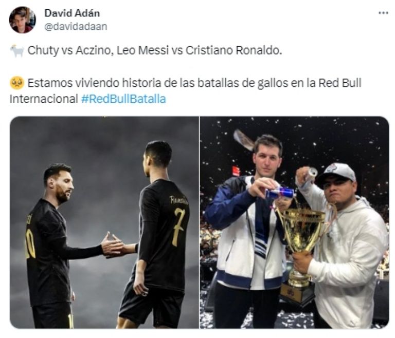 Por primera vez en su carrera, Chuty se coronó como campeón en la Final Internacional de Red Bull Batalla de los Gallos 2023: acabó con el local Fat Nigga, quien debutó en el torneo. Aczino, monarca del mundo en 2022, fue el encargado de otorgarle el cinturón. Mecha, verdugo de Yoiker, afianzó el tercer lugar consumar la eliminación de Nitro. ¿Te gustaron los memes?