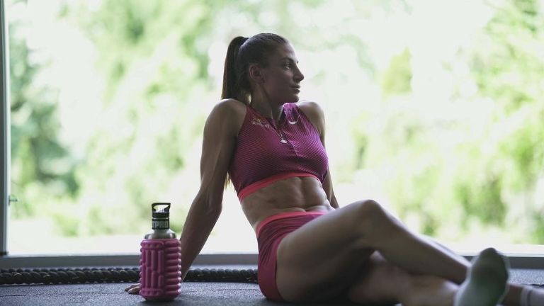 Campeona de Europa en salto de longitud, se rompió el hueso metatarsiano del pie derecho cuando trató de saltar un escalón en su patio y la baldosa bajo su pie se rompió, torciéndole el tobillo y dejándola fuera de competición por más de un mes, por lo que canceló su participación en el Mundial en pista cubierta y el campeonato europeo, sin llegar en su mejor forma a Tokio 2020, pero sí con su gran belleza madura robando suspiros.