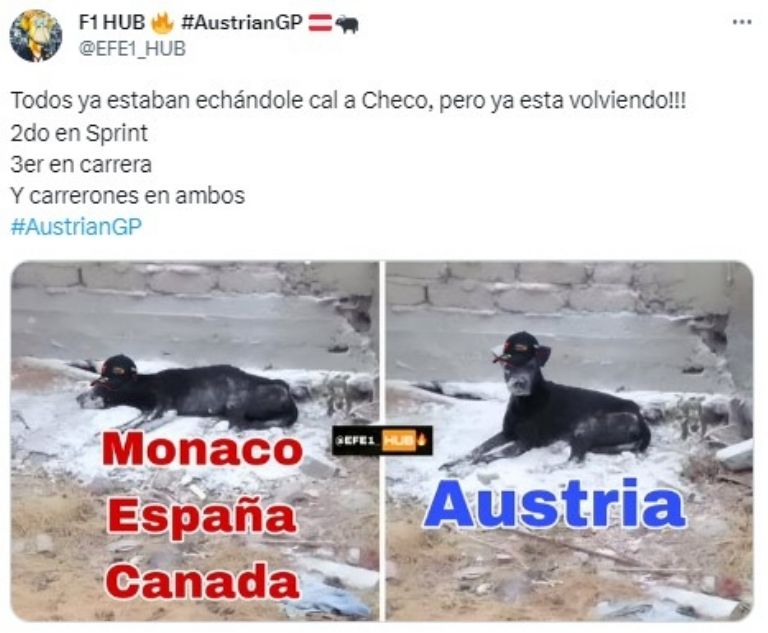 Checo Pérez realizó una carrera de alarido en el Gran Premio de Austria: el piloto mexicano vino de atrás, desde el puesto 15 de la clasificación, y afianzó el tercer lugar. Remontó 12 sitios y consiguió sumar una importante cantidad de puntos en el Mundial de Pilotos, por eso es que los memes aplaudieron su desempeño.