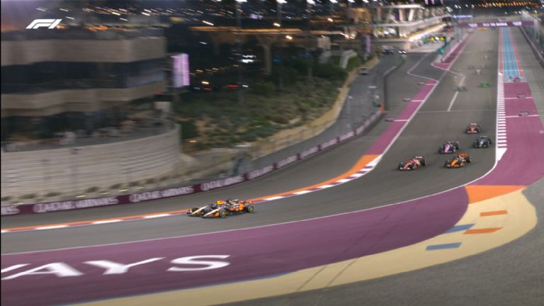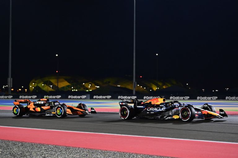 Tras ganar dos posiciones en la largada y luego de un incidente en la primera curva del GP de Qatar, Checo Pérez se ubicó séptimo detrás de los Ferrari (593) de Charles Leclerc y Carlos Sainz, mientras su coequipero y ya tetracampeón mundial Max Verstappen tomaba la punta sobre los McLaren (623) de Lando Norris y Oscar Piastri, que trataban de defender con todo sus 30 puntos de ventaja sobre los del Cavallino Rampante en el Campeonato de Constructores.