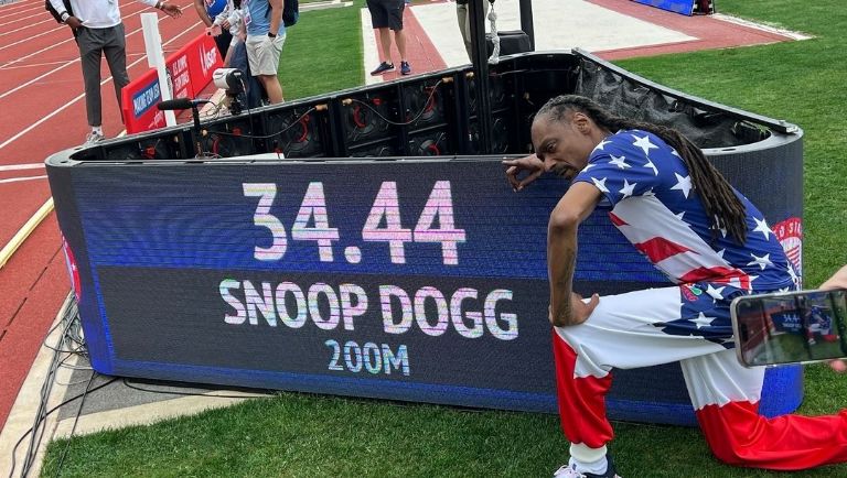 Snoop Dogg lo dejó todo en su exhibición y sorprendió con un tiempo de 34.44 segundos, lo que definió al término de la prueba de atletismo como ‘nada mal para alguien de mi edad’. El rapero disfrutó sentirse como la leyenda Usain Bolt durante poco menos de un minuto y demostró estar listo para la cobertura de los Juegos Olímpicos París 2024, los cuales se encuentran a un mes de distancia.