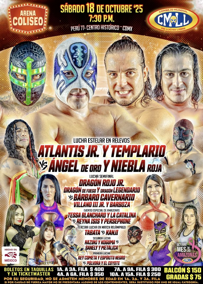 Cartelera del Sábado de Arena Coliseo del 18 de octubre