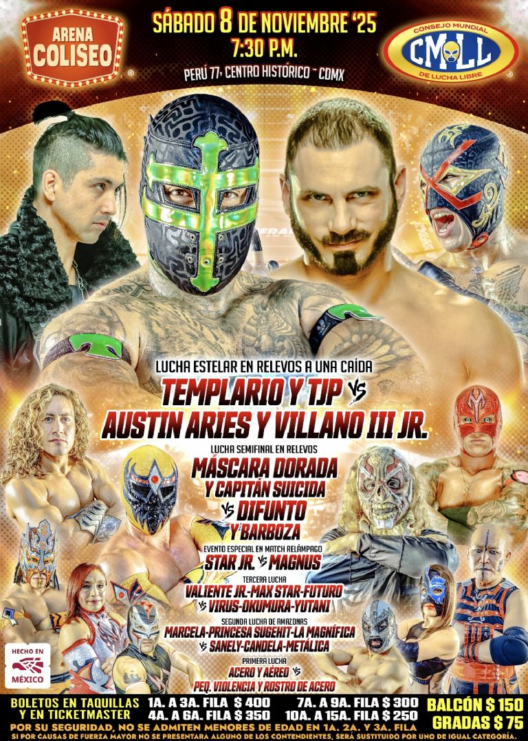 CMLL: Austin Aries, Soberano Jr. y TJP encabezan las CARTELERAS del 7 al 11 de noviembre
