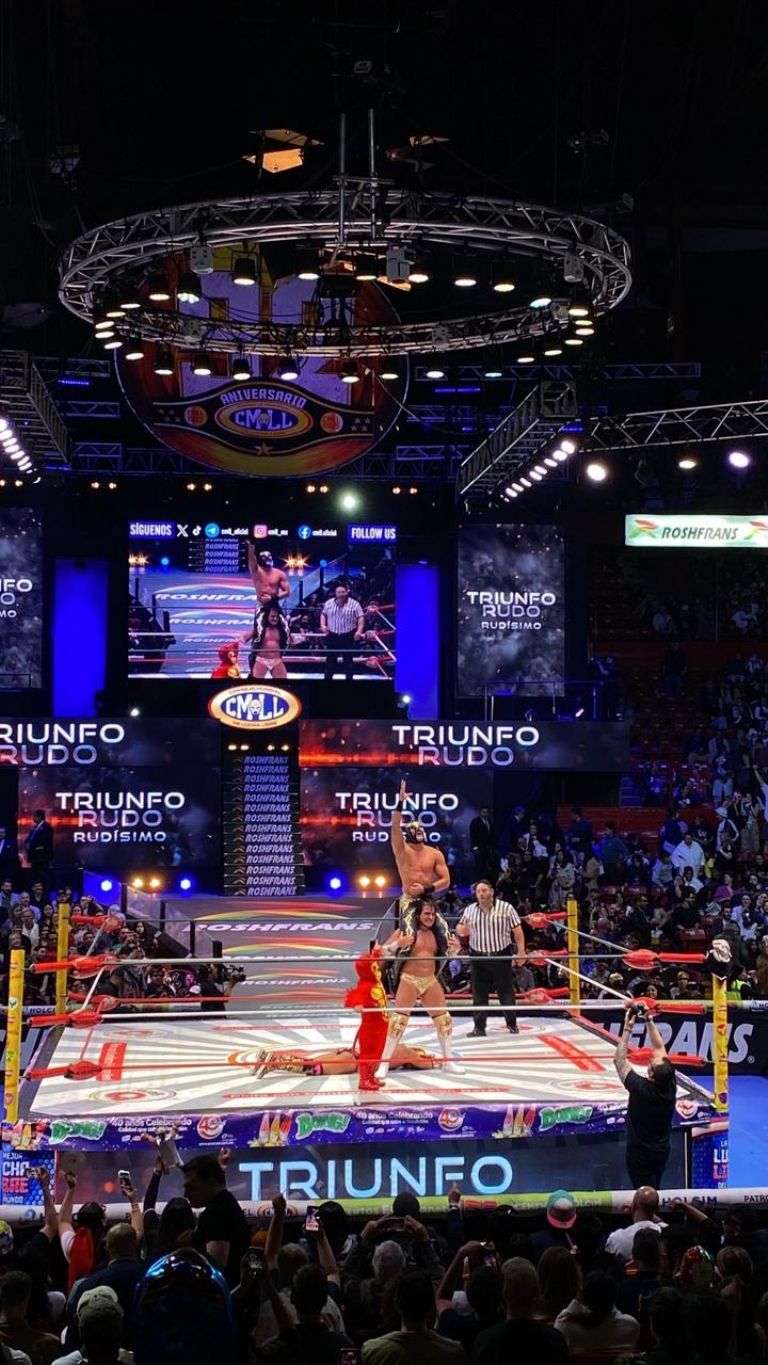 Pese a que resistió las estacas de Titán, lo revirtió con un piledriver para afianzar el conteo de tres. A lo largo del compromiso, recibió un sinfín de aplausos e incluso besó a un par de seguidoras en las primeras filas. Al culminar la actividad, agradeció por el apoyo y confesó su cariño por la grada: “Ya los extrañaba, ya estoy de vuelta”.