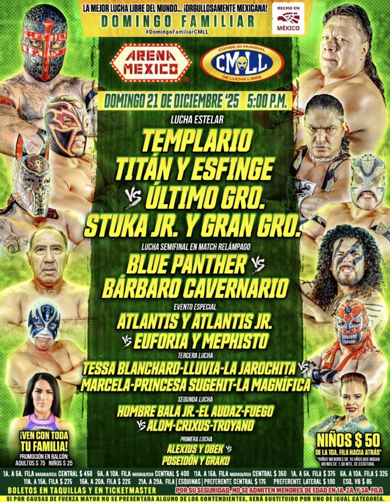 Cartelera del Domingo Familiar del 21 de diciembre en la Arena México
