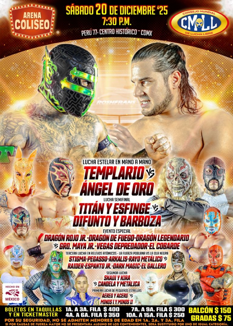 Luchas confirmadas para el Sábado de Arena Coliseo del 20 de diciembre
