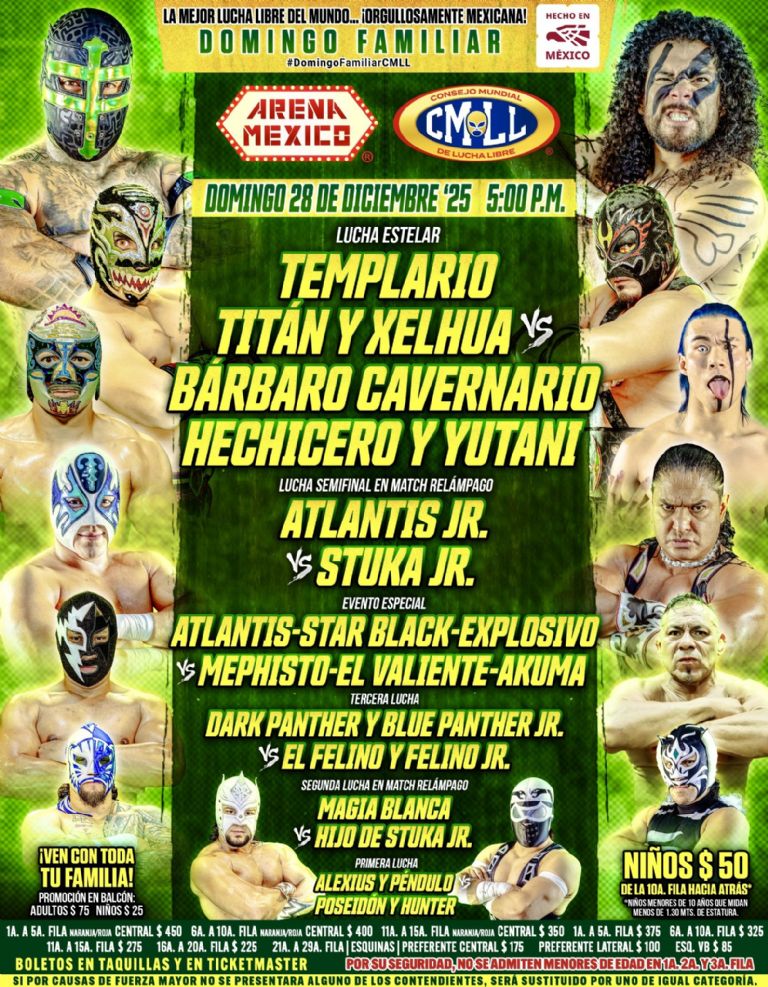 Combates anunciados para el Domingo Familiar del 28 de diciembre en la Arena México