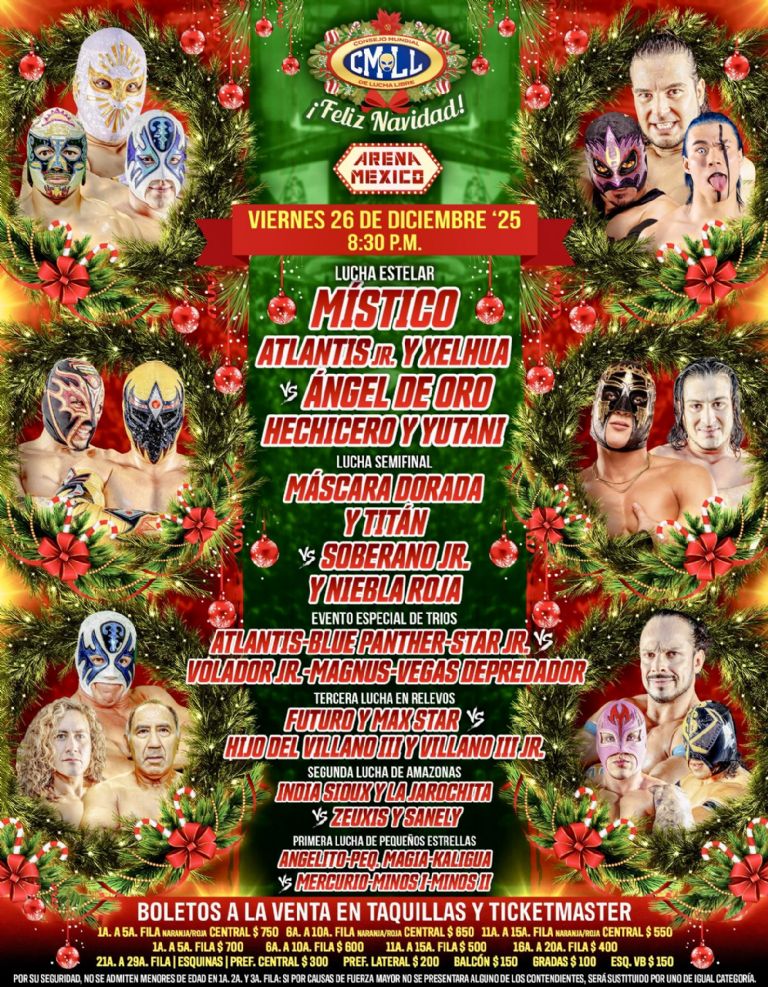 El Consejo Mundial de Lucha Libre (CMLL) culminará el 2025 con 4 carteleras de gran relevancia en sus arenas: no sólo tendrá una función temática de Navidad en la Arena México, sino que desarrollará un choque de apuestas en "El templo del dolor" para los aficionados poblanos. ¿Quiénes lucharán en los espectáculos?