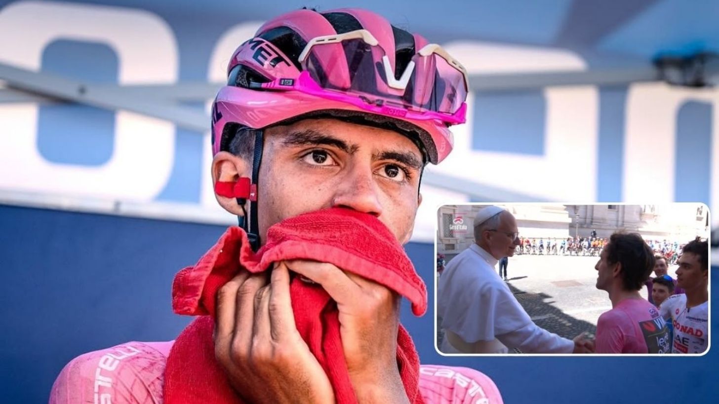 “Torito”, de apenas 21 años y portador de la maglia bianca, fue el segundo en saludar al Santo Padre después del virtual campeón, Simon Yates. El oriundo de Ensenada, Baja California, compartió una sonrisa emocionada mientras recibía el reconocimiento espiritual en uno de los escenarios más imponentes de Europa.