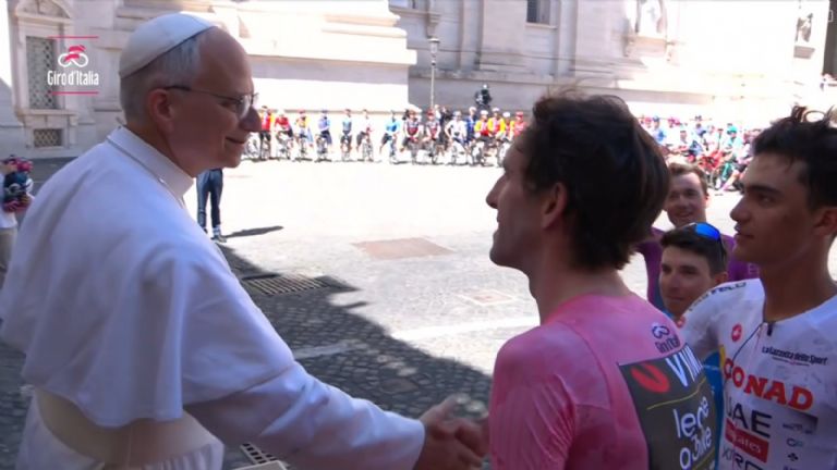 El Papa León XIV, primer pontífice de origen peruano-estadounidense y reconocido por su cercanía con el deporte, al igual que Mario Bergoglio, se dirigió a los ciclistas con un mensaje de admiración y aliento. "Son modelos para todos los jóvenes del mundo", declaró. Además, recibió una réplica de la maglia rosa de manos del organizador Urbano Cairo, como símbolo de unidad entre fe y deporte.
