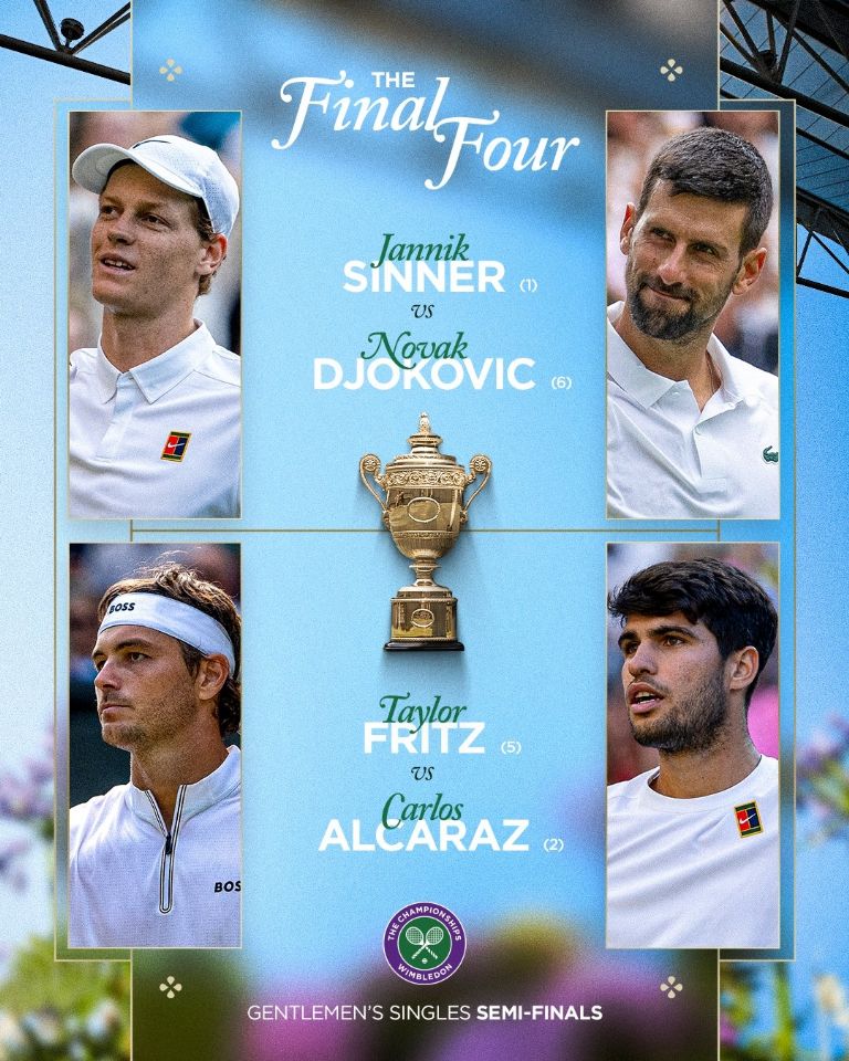 La emoción en Wimbledon 2025 alcanza su punto más alto con la llegada de las semifinales masculinas. El césped del All England Club será testigo de dos cruces cargados de talento, historia y rivalidades modernas: Taylor Fritz chocará con Carlos Alcaraz, mientras que Jannik Sinner se enfrentará nuevamente a Novak Djokovic en una batalla que ya se volvió un clásico del circuito.