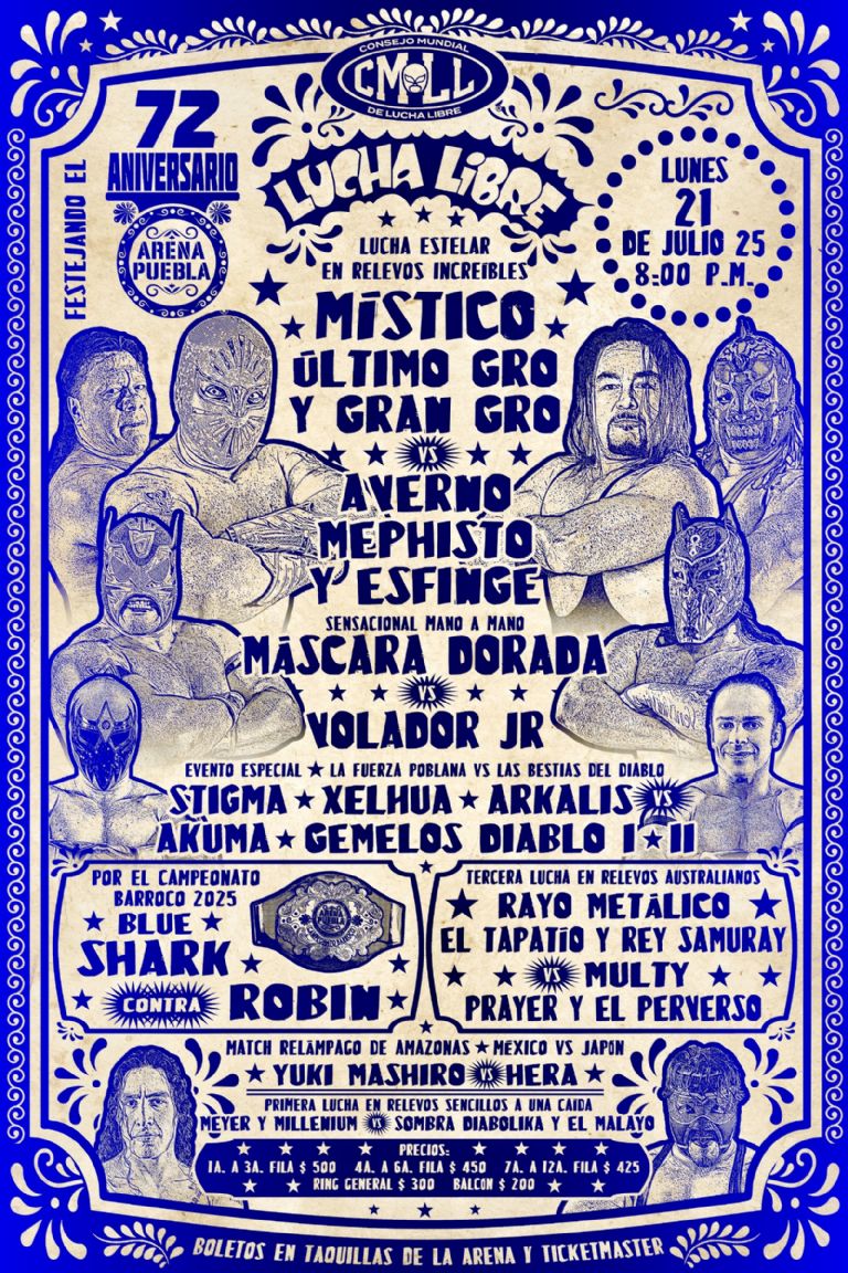 El Consejo Mundial de Lucha Libre (CMLL) tendrá un fin de semana cargado de acción en sus distintas arenas del país. Sin embargo, contará con la presencia de múltiples estrellas de carácter internacional: entre ellas, Místico, Bandido y The Beast Mortos; asimismo, festejará las Eliminatorias del Torneo La Leyenda de Plata 2025 y el 72 Aniversario de la Arena Puebla.