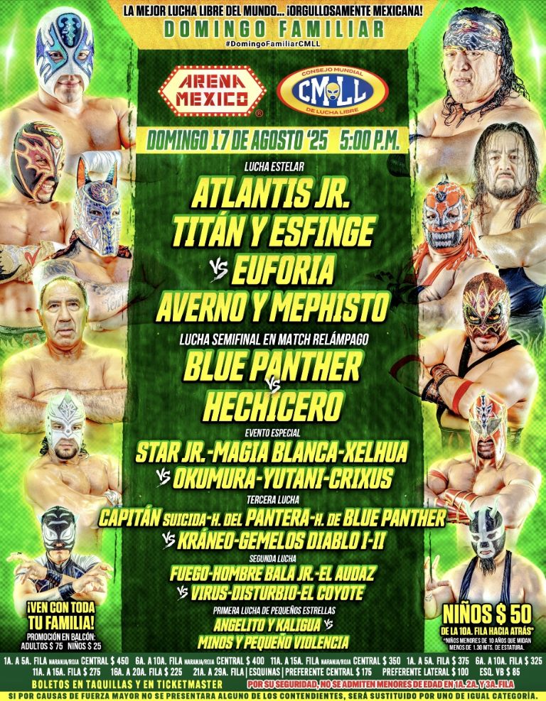 Así será el Domingo Familiar del 17 de agosto en el CMLL