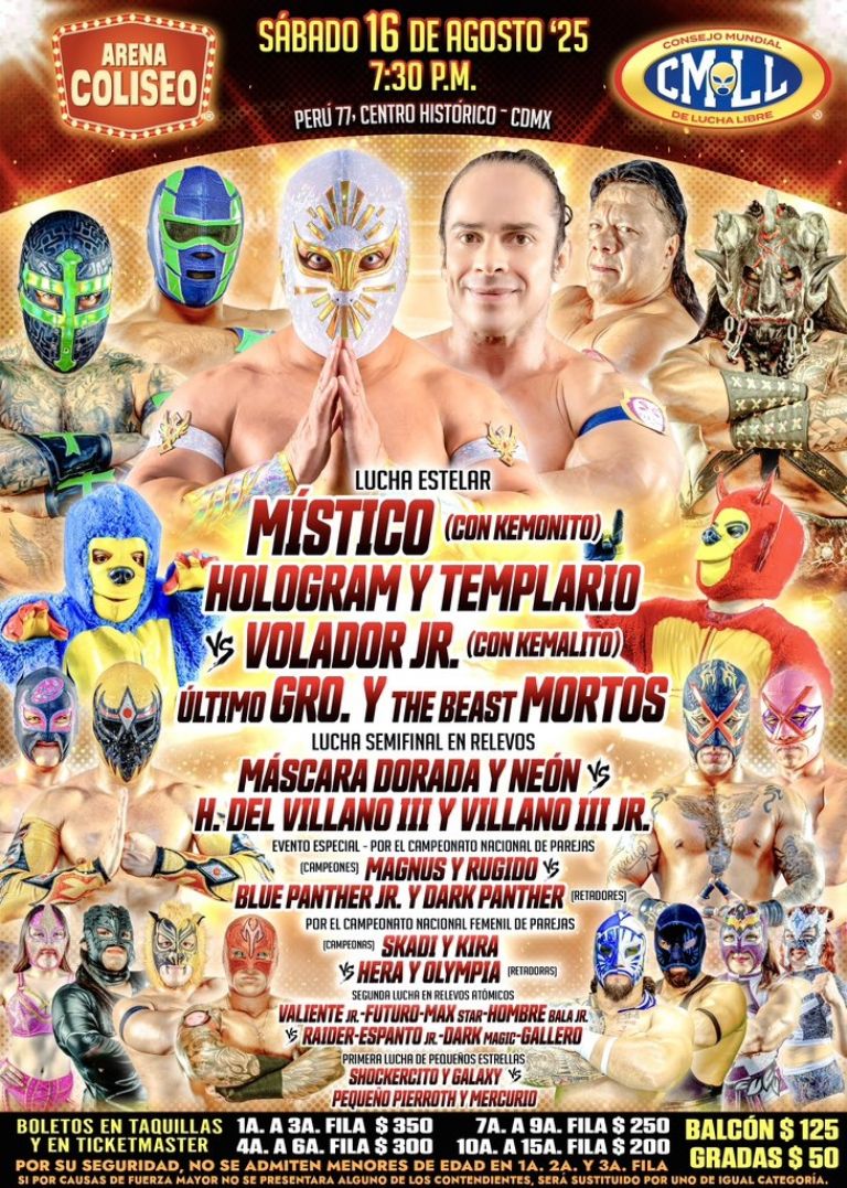 En tanto, el sábado, "El Embudo de la Lagunilla" sostendrá algunos choques con campeonatos en juego y recibirá a las máximas estrellas del CMLL; entre ellos, Místico, Templario, Volador Jr, Último Guerrero, Máscara Dorada y Neón. Los boletos para ambas funciones están cerca de agotarse. El domingo, Blue Panther se medirá ante Hechicero.