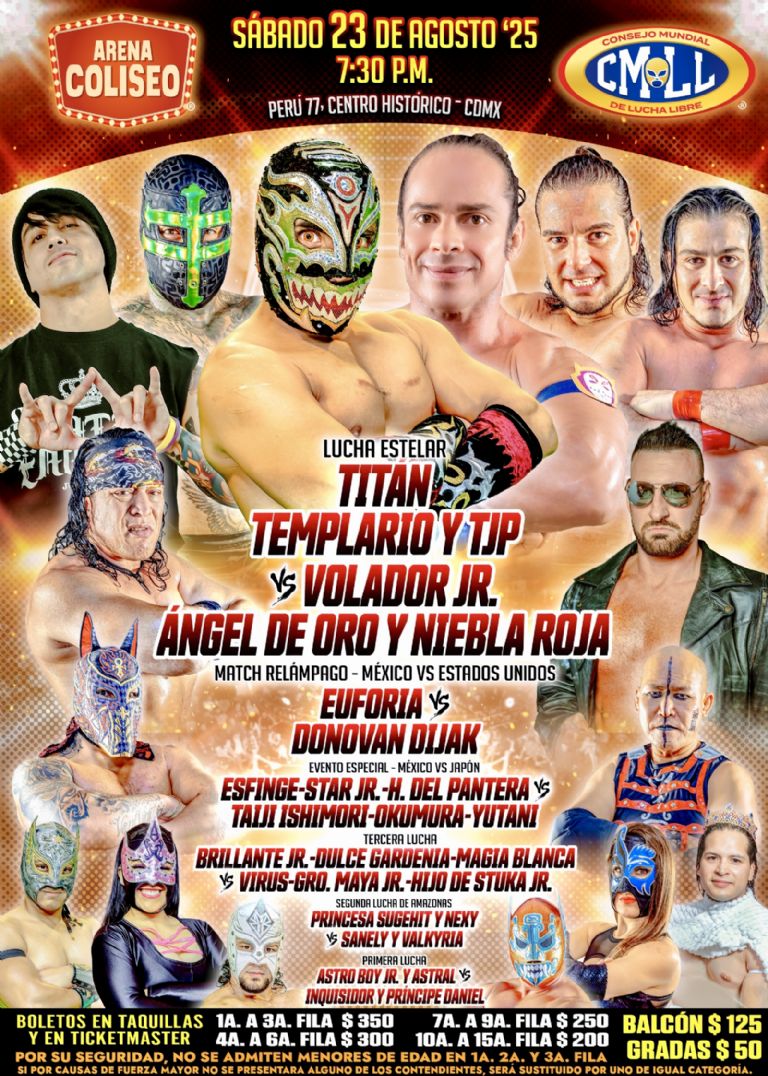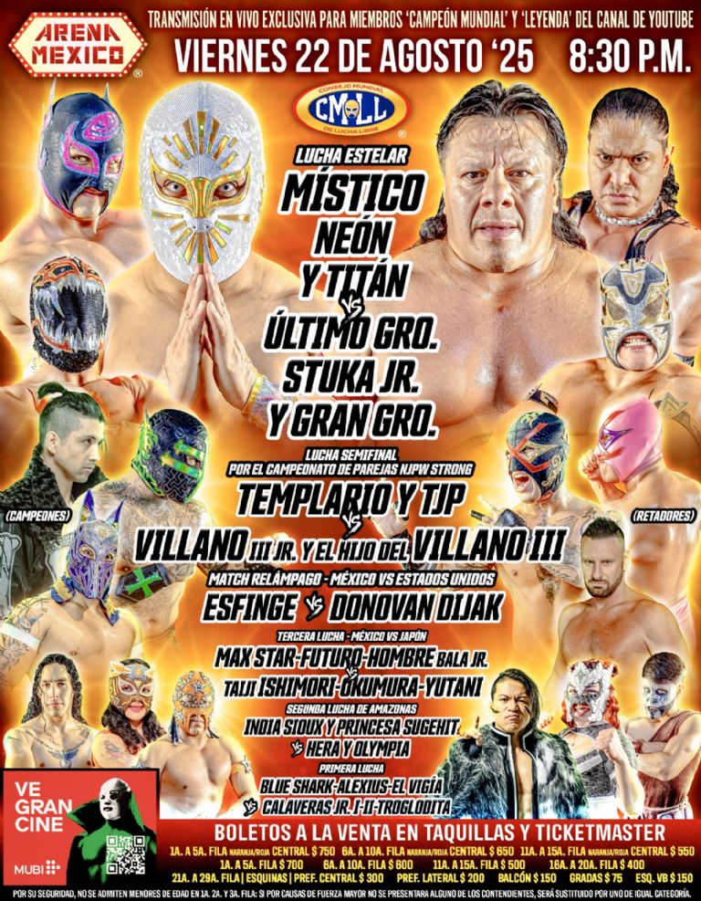 - Lucha de Naciones 2025: Último Guerrero vs Atlantis Jr vs Villano III Jr vs Dulce Gardenia vs Hijo del Villano III vs Explosivo vs Donovan Dijak vs TJP vs Dark Magic vs Okumura vs Yutani vs Taiji Ishimori.